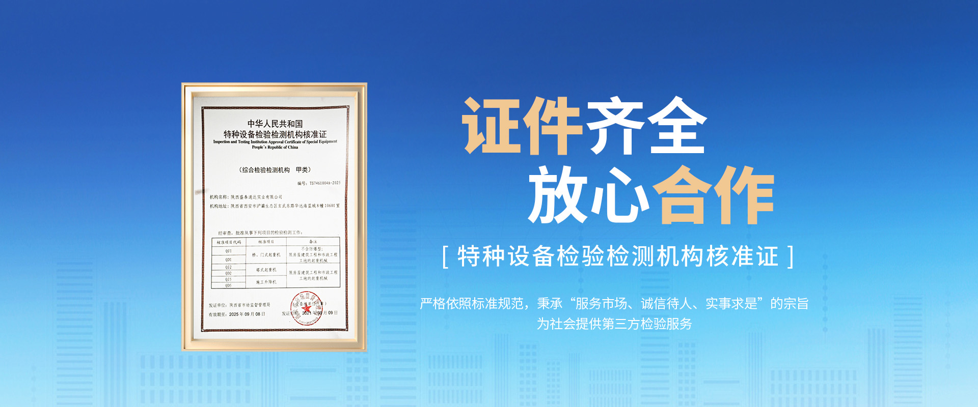严格依照标准规范,秉承“服务市场、诚信待人、实事求是”的宗旨,为社会提供第三方检验服务